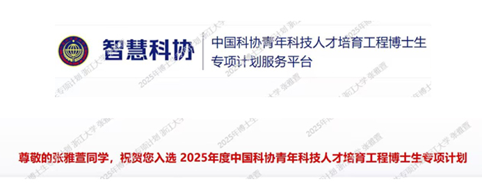 Congratulations on Yaxuan's receiving of the 2025 Young Talent Cultivation Program for PhD Students from CAST.