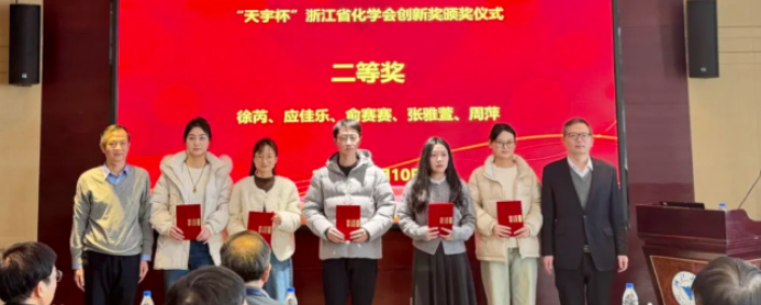 Hearty congratulations to team members Yaxuan Zhang and Ping Zhou for winning the 2025 "Tianyu Cup" Innovation Award of the Zhejiang Chemical Society.